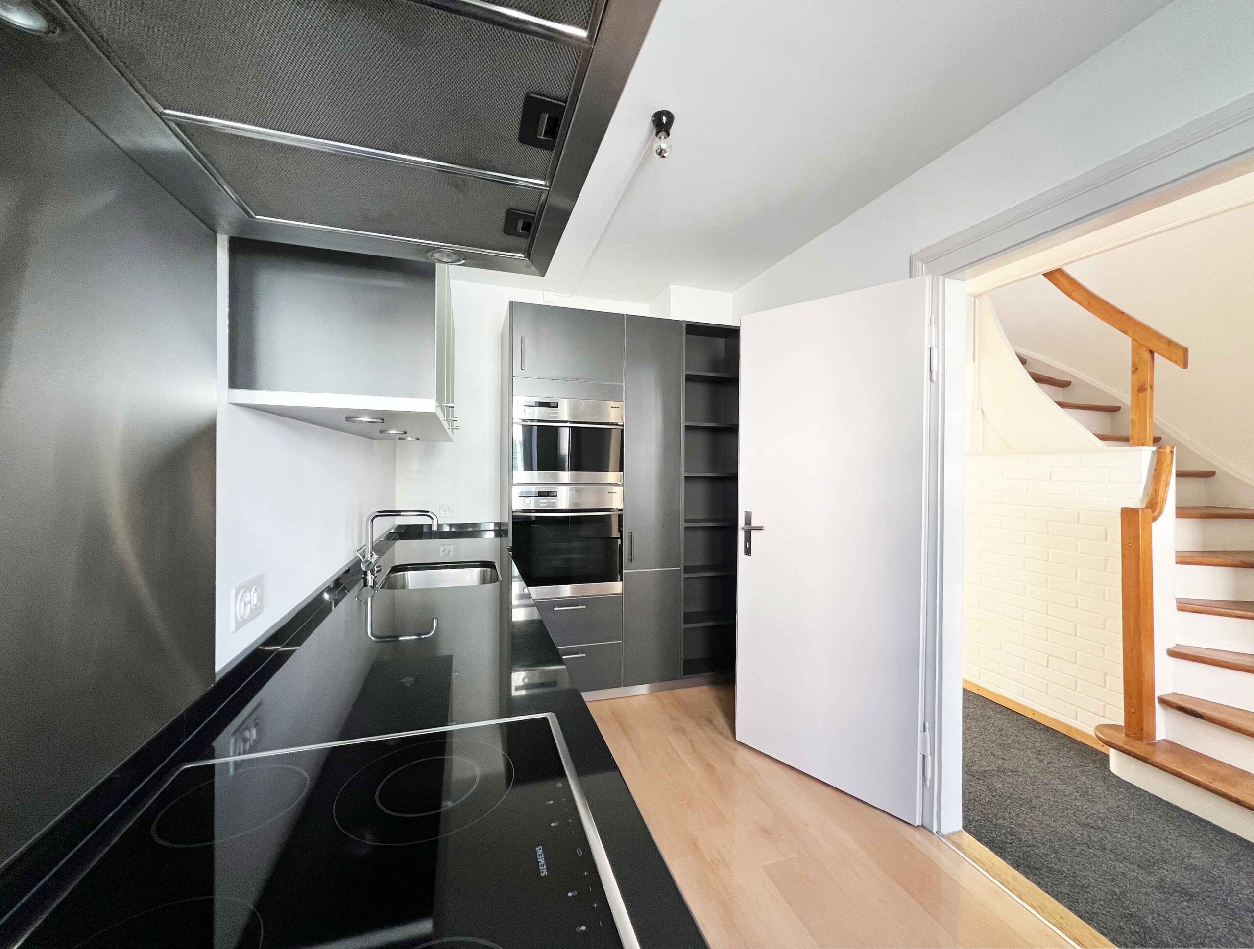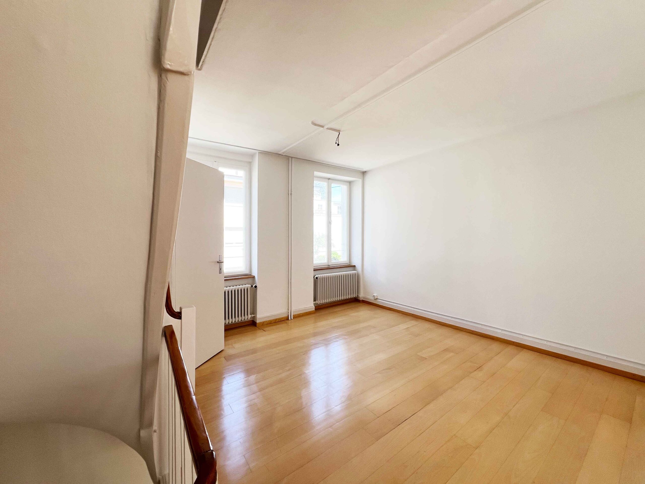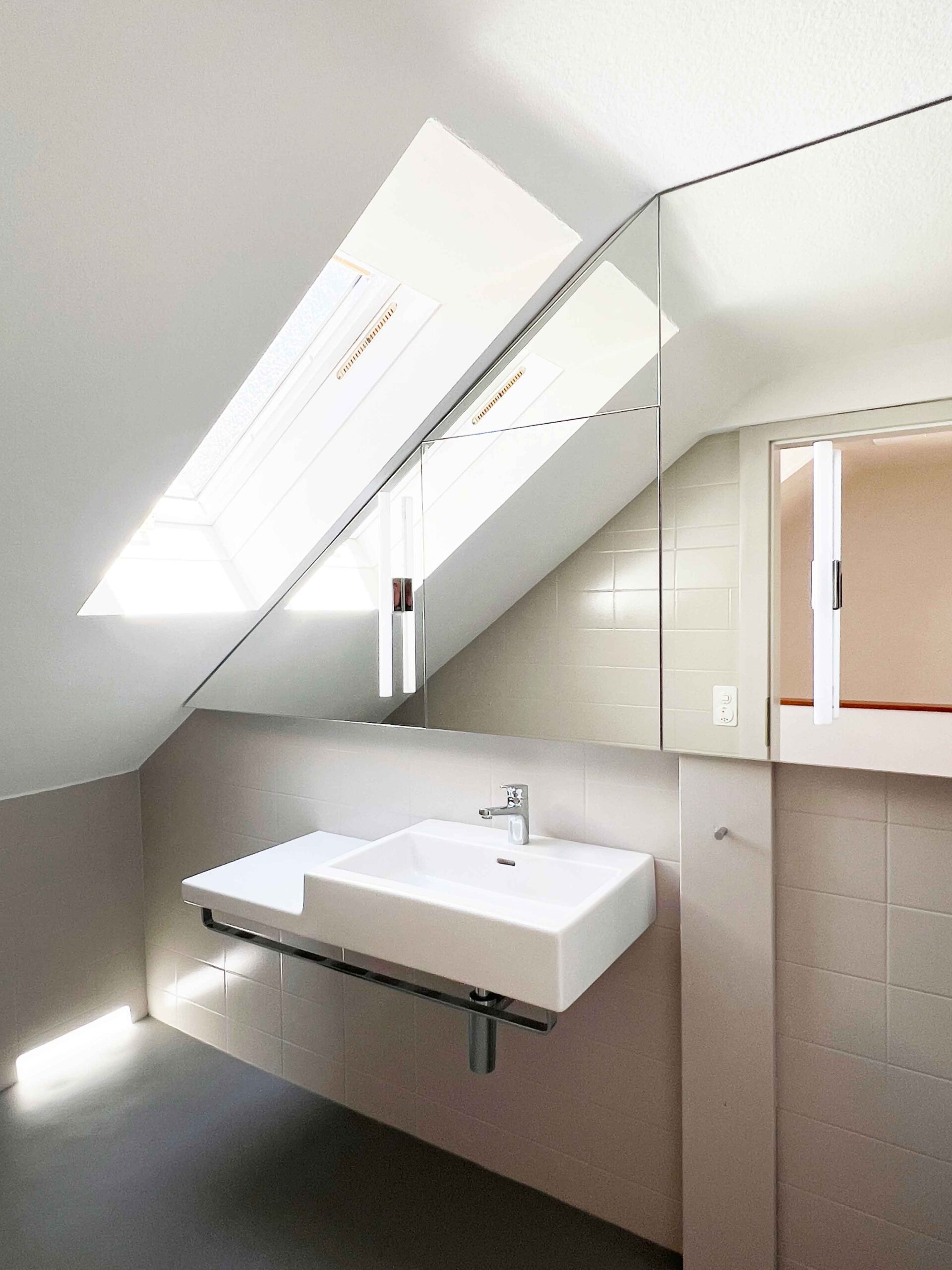 Im Obergeschoss steht ein Durchgangszimmer mit sep. WC und ein gartenseitiges Schlafzimmer zur Verfügung. Im Dachgeschoss findet sich ein weiteres Schlafzimmer, Dusche/WC und ein Réduit. Im Untergeschoss sind Kellerräume, Heizung und Waschküche mit neuem Waschturm untergebracht.