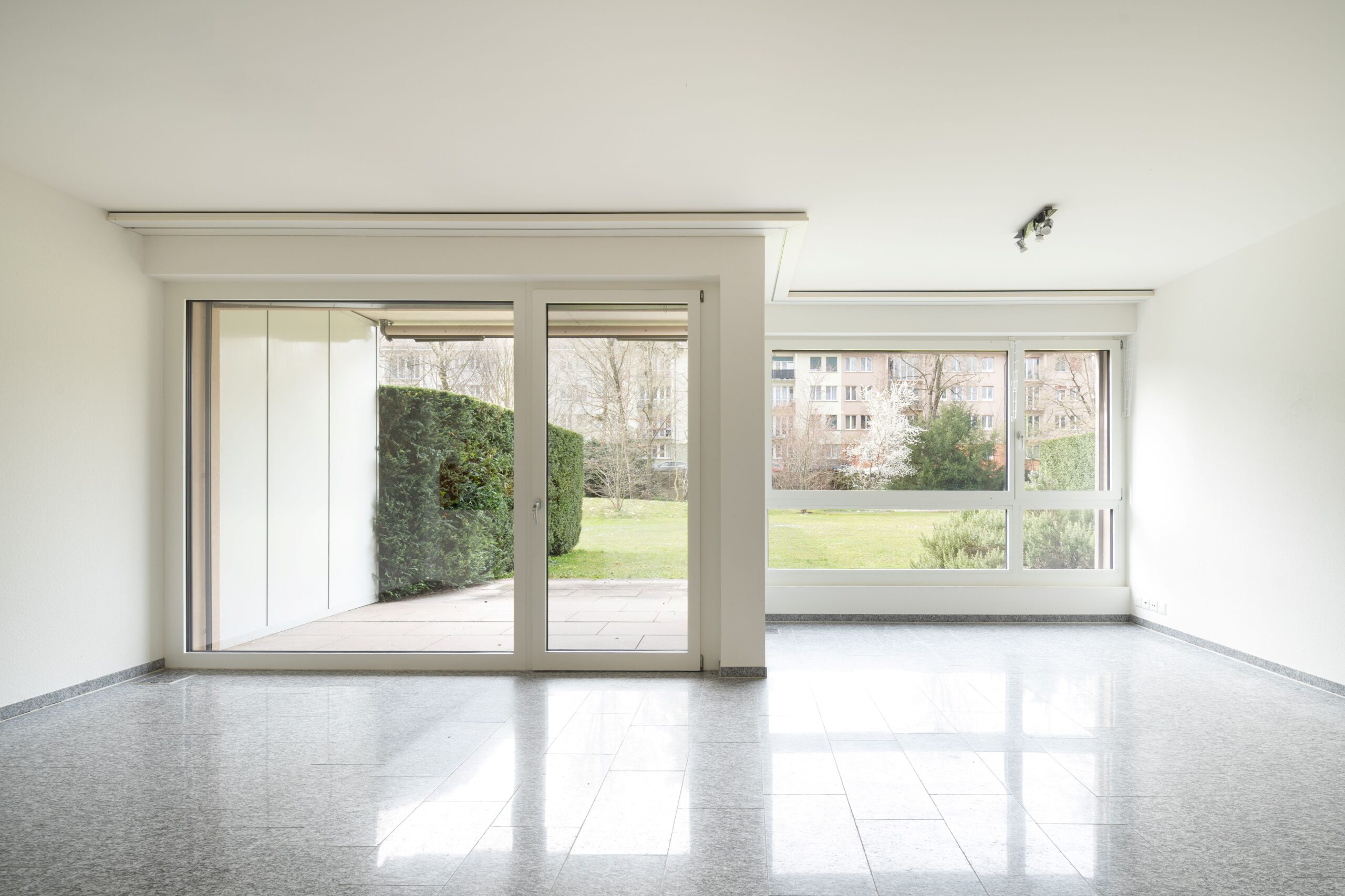 Wir verkaufen diese moderne und neuwertige 2.5-Zimmer-Gartenwohnung mit Autoeinstellplatz und Indoor Hallenbad.